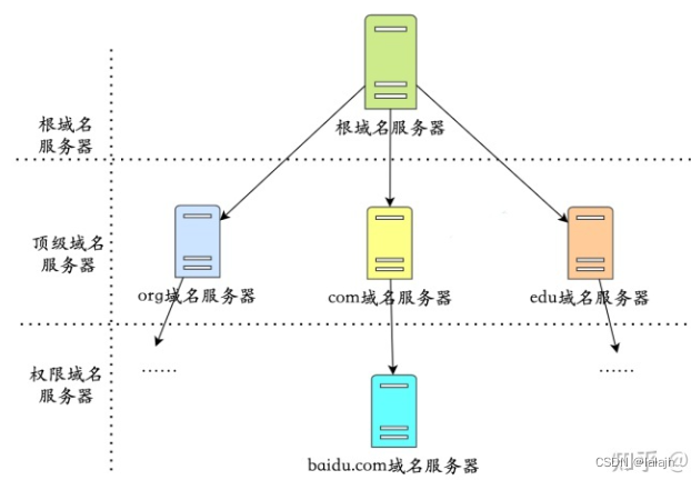 - 本地DNS服务器向根域服务器发送请求,该请求返回负责COM的高级域服务器的IP地址列表。