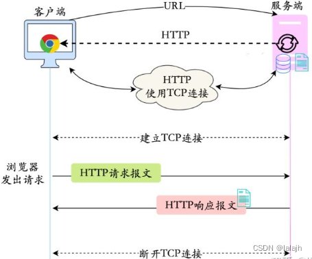 - TCP连接:客户端(浏览器)和服务器通过三个握手建立TCP连接
