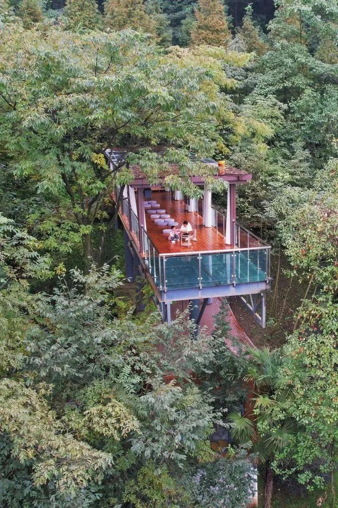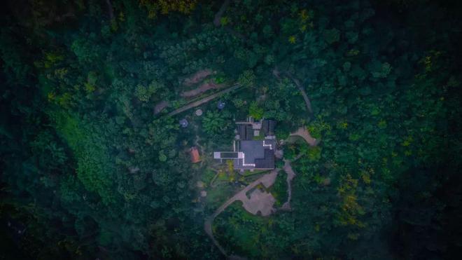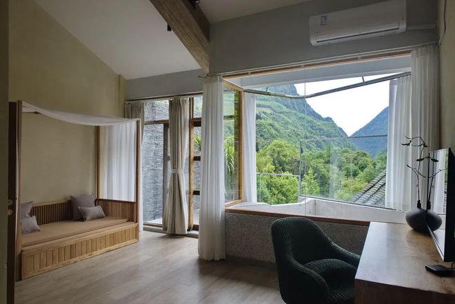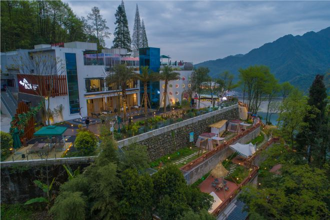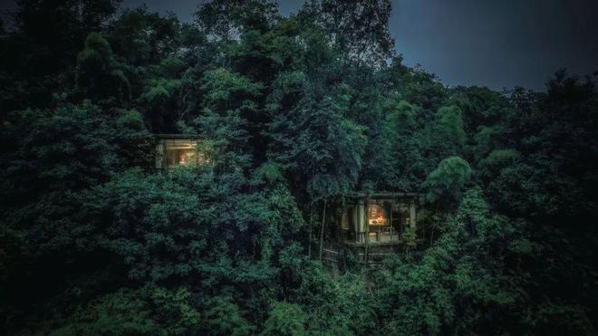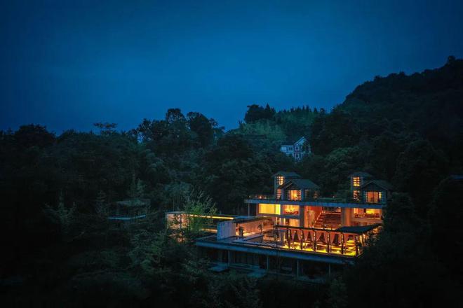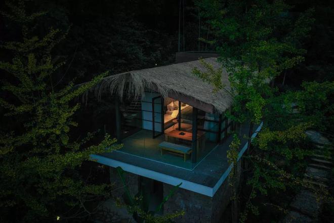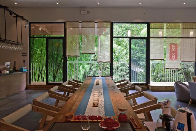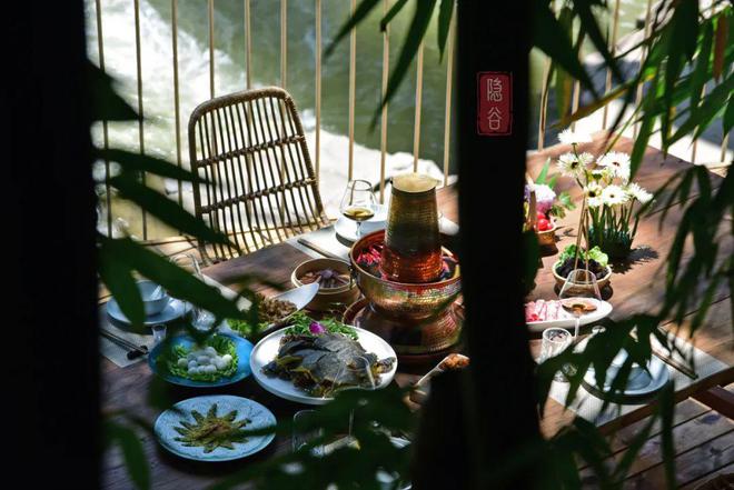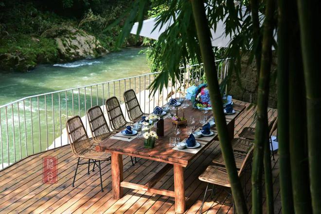 隐藏的山谷自然定制的餐馆,隐藏在山水之间,与老悬挂桥相互依存,成为自然的一部分。