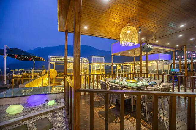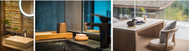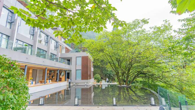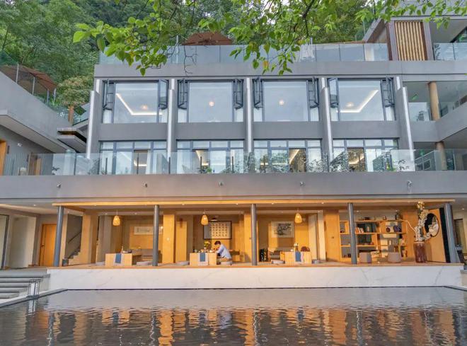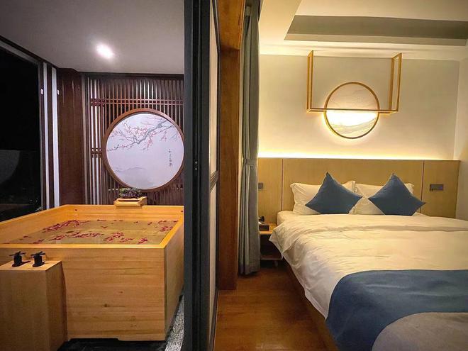 池塘里的水,远处山脉,形成山水的自然美,颜色相同,一个人可以喝在里面,不能站久。 16个风景室,8个独立别墅,自有温泉喷泉,悬崖竹屋270度竹海四周。