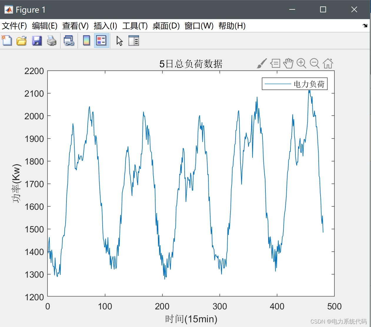 使用Matlab中的xlsread函数从指定的Excel文件中提取功率负载数据,您可以设置您自己的进口日数。这里可以设置5天的数据,如下图所示:
