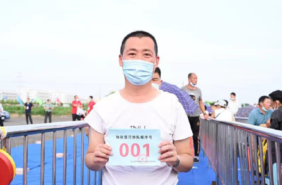6月26日,盐山县贾山村的修复工程正式启动,村人王郑洋在开采协议的第一次签字后表示兴奋。