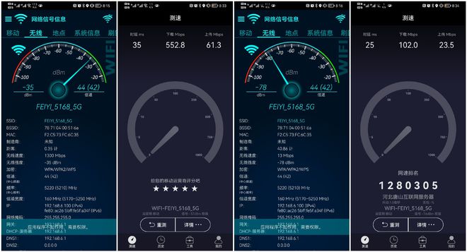 我以前也有其他类型的无线路由器,两墙间的卧室信号并不十分令人满意.躺在床上玩手机时,你经常要把手机伸到脚部,让我们把它靠近老路由器,然后再强迫信号.同时下载速度超慢,而且这个AX300 WIFI 6无线双频路由器性能很好,虽然看起来两堵墙的信号强度并不太强,但下载速度很好,它比我的老路由器多三四倍,虽然它尚未达到理论的网络最大速度300Mbs,但实际上的500Mbs也第一次被看到。