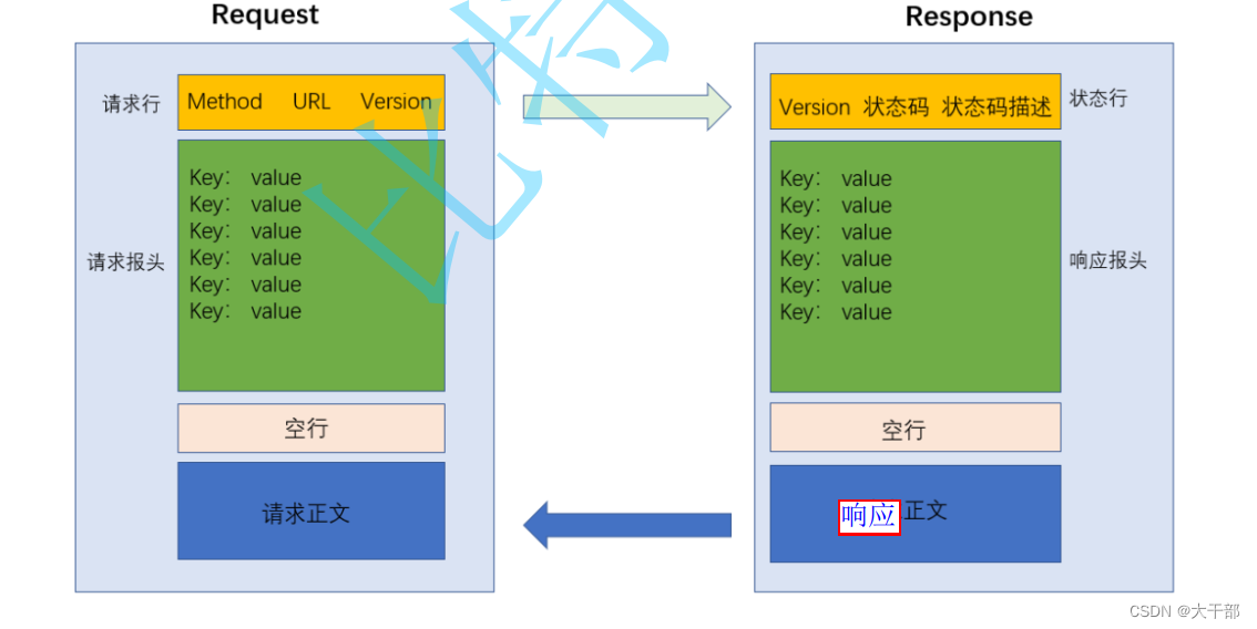 4. 响应: 服务器 向 客户端 返回 的 数据 ;