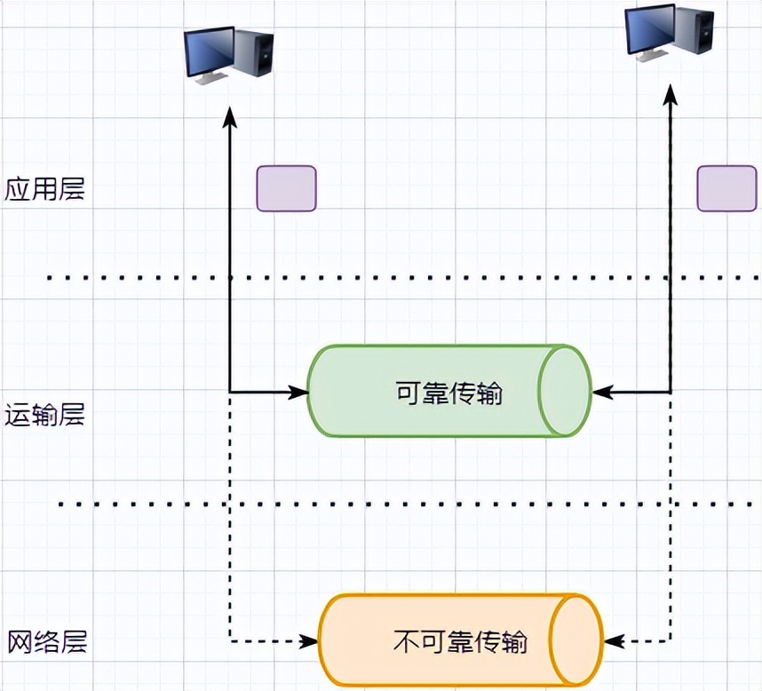 对于应用层来说,他是一个可靠的运输基础支持服务; 基础运输层使用网络层不可靠的运输.虽然网络层甚至数据链路层都可以使用协议来保证数据传输的可靠性,但网络的设计将更加复杂,效率将降低。为确保传输层的数据传输的可靠性,会更加合适。