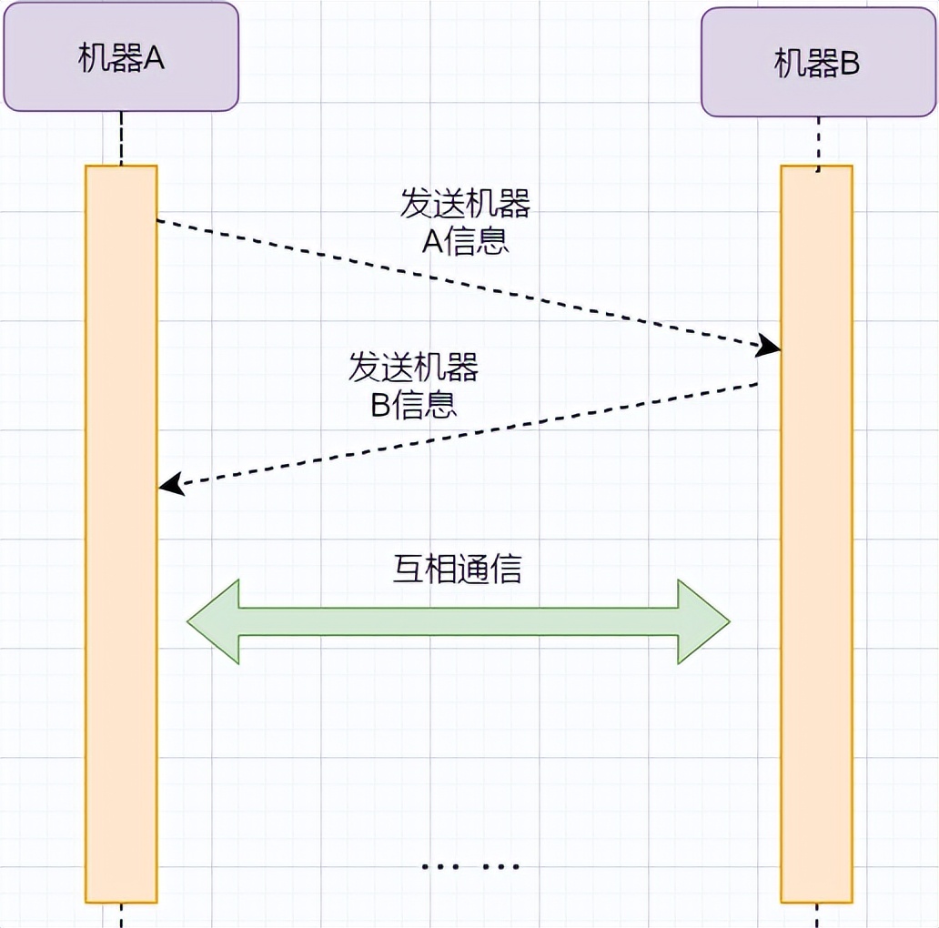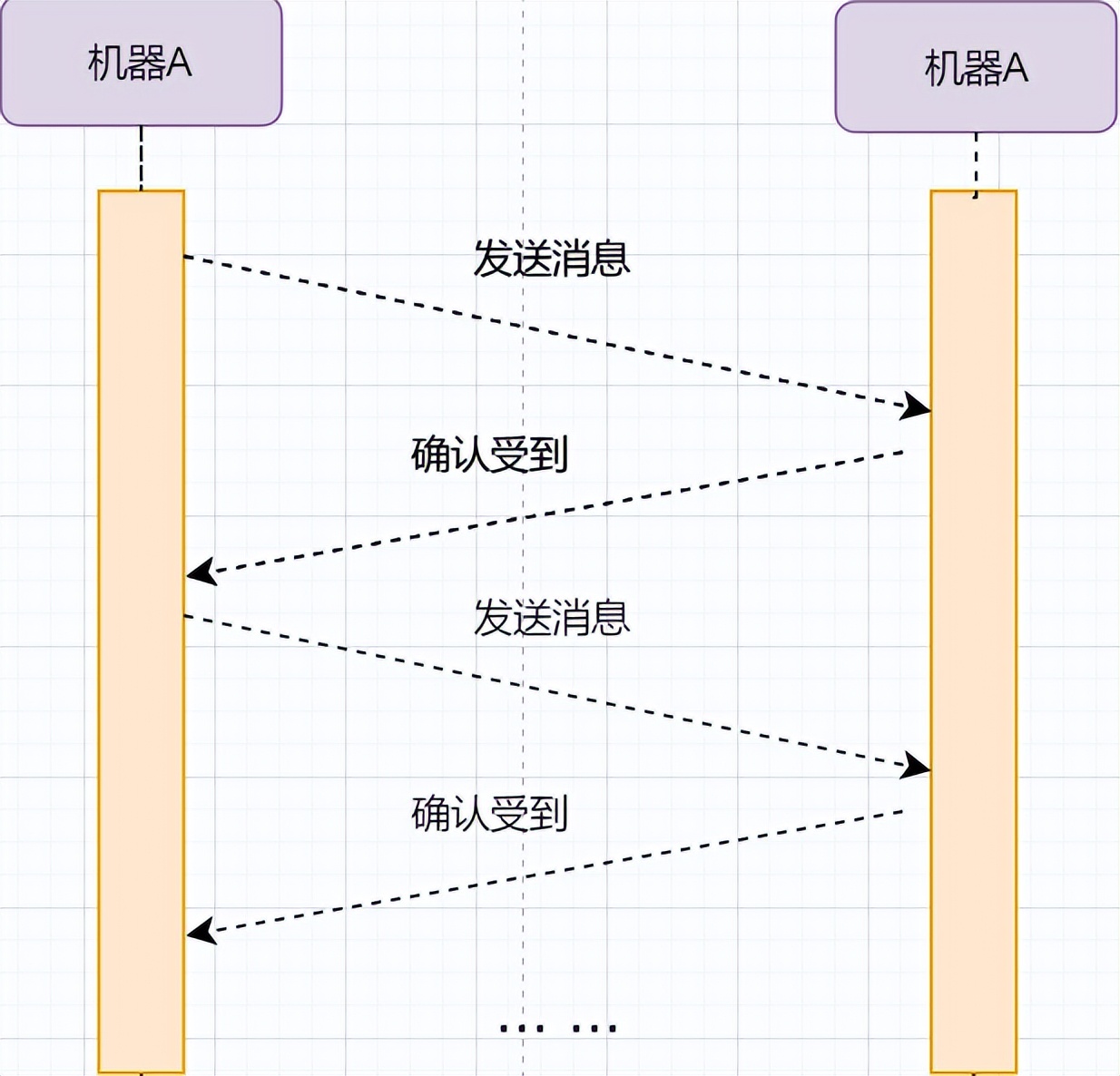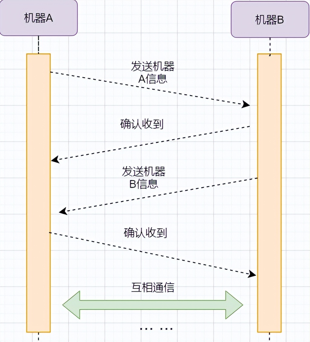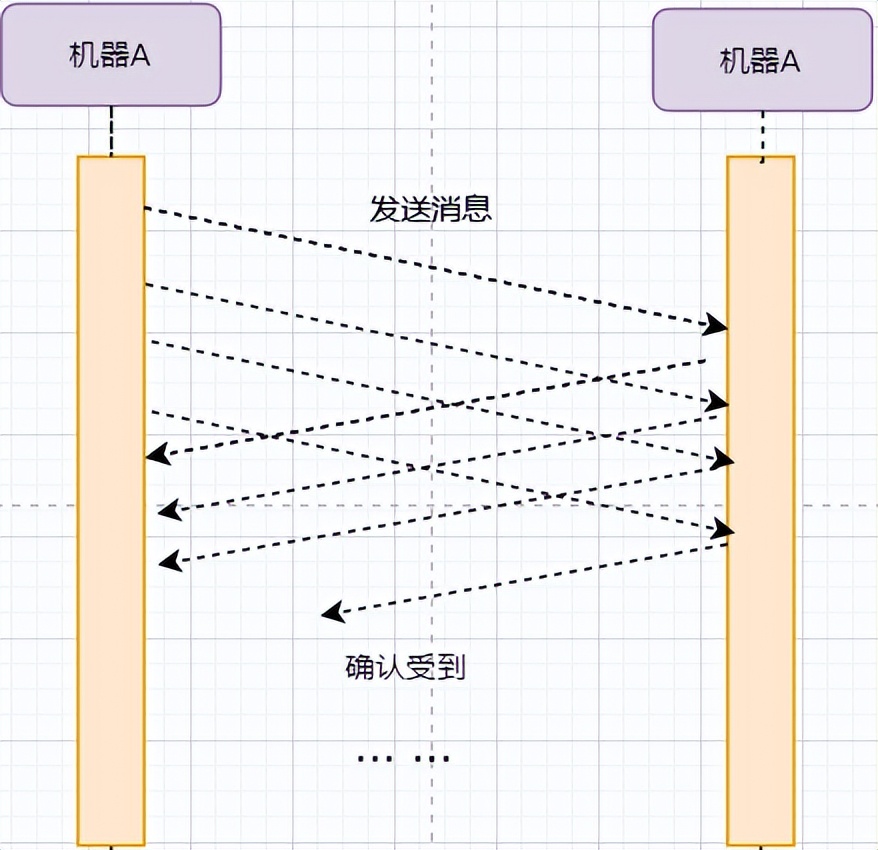 对机器B的收据和机器B的信息的确认可以结合来减少频率;发送机器B到机器A本身代表机器B已经收到消息,所以最后的例子图是: