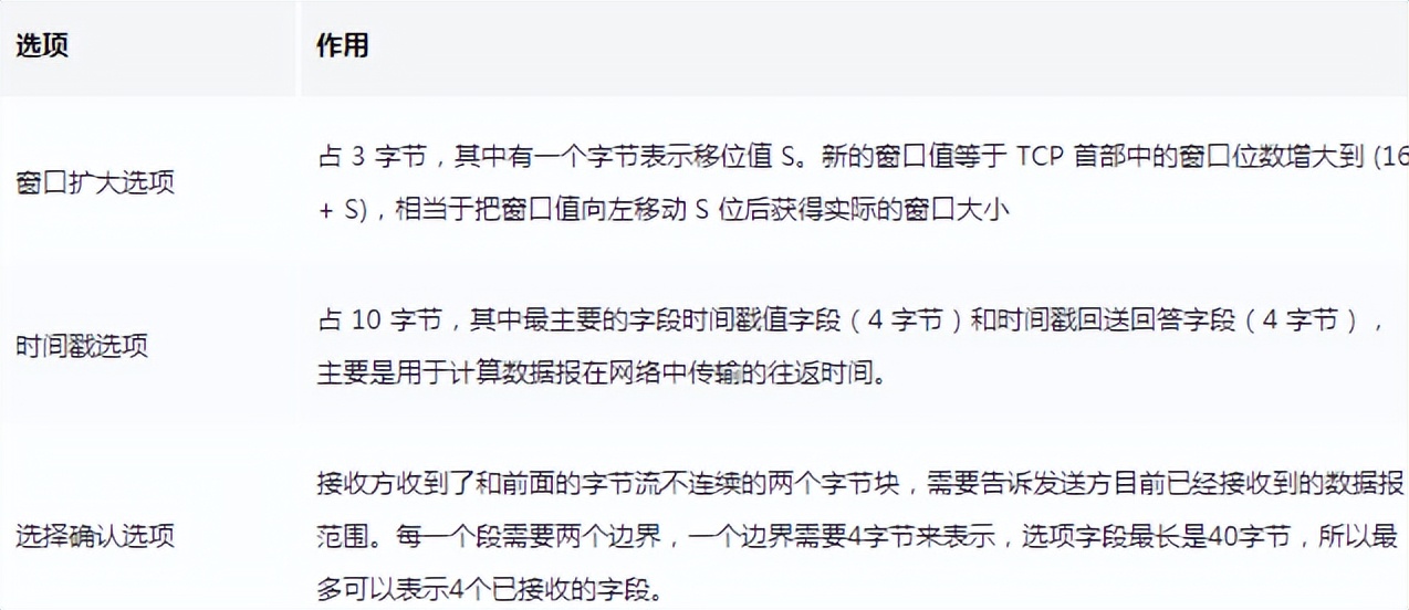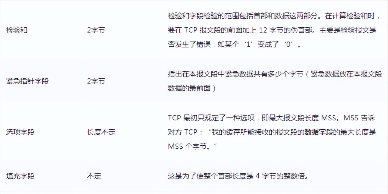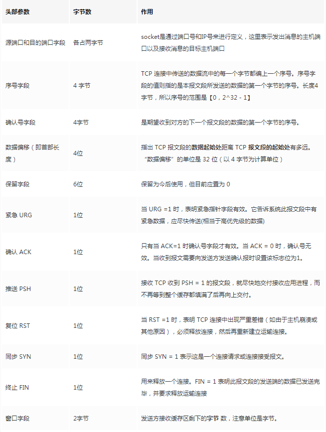TCP的第一个固定长度是20字节,下面还有四个选择。内容很多,但其中一些是我们熟悉的:源码头,目标端口。嗯?是否需要插座通过IP定位?IP地址被添加到网络层中。其余内容将缓慢地解释,作为一篇总结文章,这里放出查阅表,方便复习: