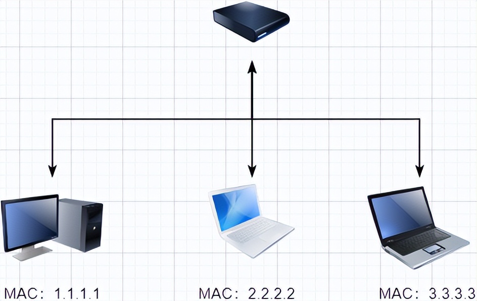 当然,我们不能满足两台计算机的连接,所以我们可以使用开关连接多个计算机,如图所示: