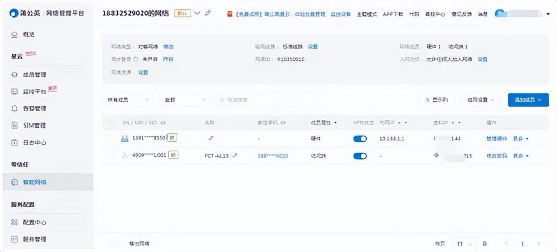 进入云管理接口后,选择的设备被添加为智能群网络接口的成员,然后建立本地网络。 标准版本支持三个用户免费使用,这对于我的家来说足够,而且对于大规模使用场景和企业来说,升级可以购买。