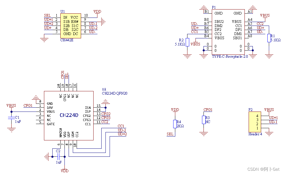 解决方案二使用CH224+CH442方案,可以传输USB数据,同时确保完全的协议充电。