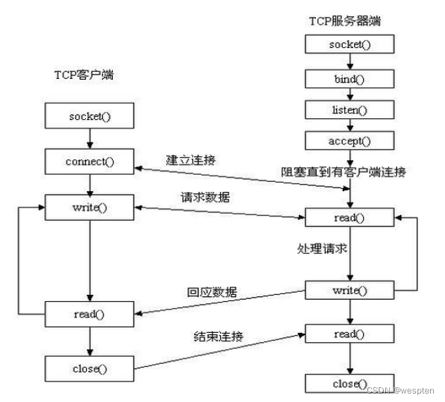 服务器终止以初始化接口,然后绑到端子上,听着港口,调用接受块,等待客户端连接。此时,如果客户端启动一个接口,然后连接服务器,如果连接成功,此时,客户端与服务器之间的连接已经建立。客户发送数据请求,在服务器端接收请求和处理请求,然后向客户发送响应数据,客户端读取数据,最后关闭连接,一次交互结束。