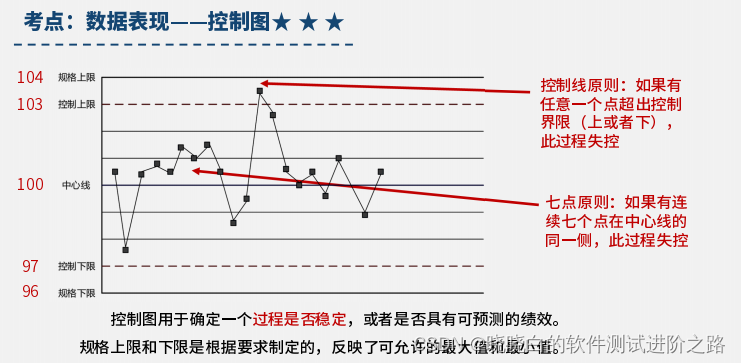 控制图有一个中心线,控制上下限度,规范上下限度,控制上下限度将更加严格 |