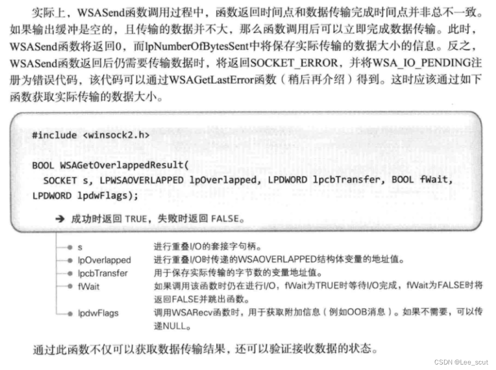 为了验证I/O的完成和完成,称为WSAGetOverlappedResult函数。