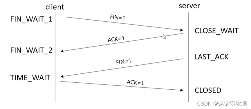 - 服务端状态更改为LAST_ACK;等待客户发送ACK确认包