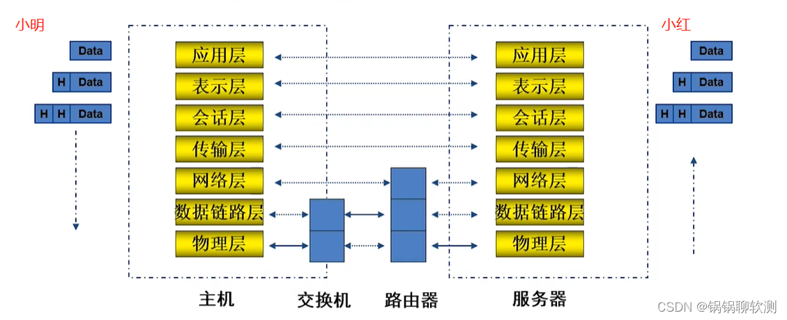 - 小明显示层:不关心顶层的数据格式,将整个应用程序层的数据放在一个封筒中,加上显示层的数据头