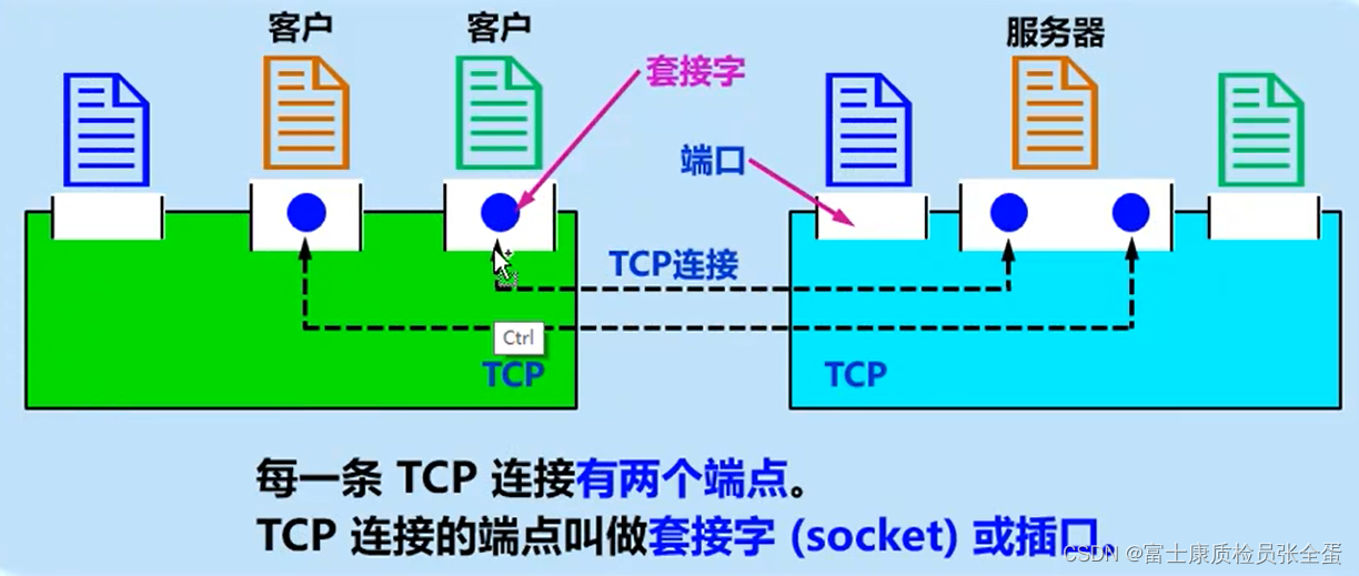 TCP将连接视为最基本的抽象。每个TCP连接都有两个终端。