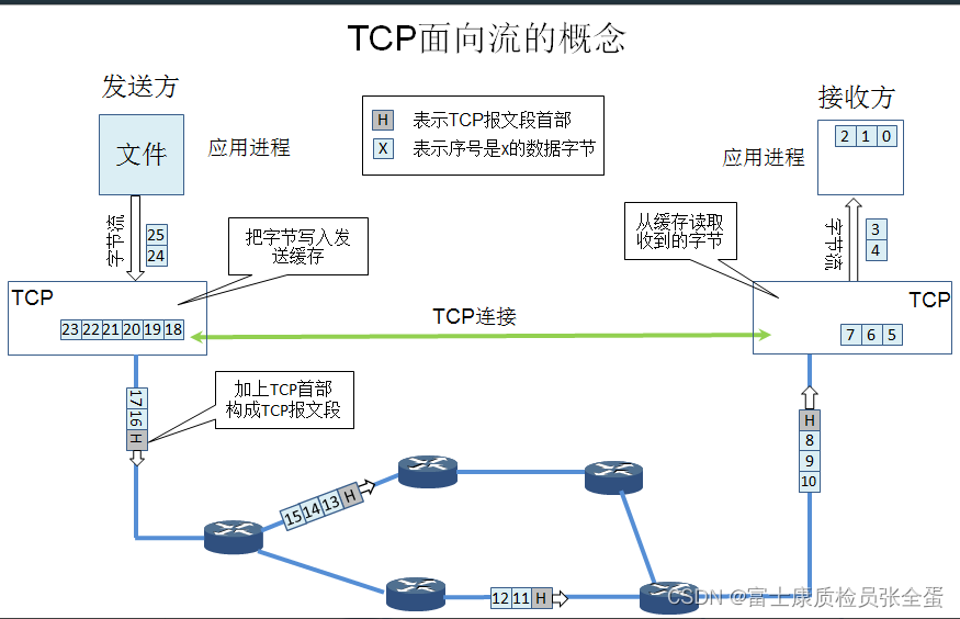 面向字节流。TCP中的“蒸汽”一词指进出过程的字符的序列。不管是网页还是图片,都按照字节8比特,每个字节都放在缓存中,应用层传递到传输层是节点流,udp是报文,将发送到UDP协议的应用程序的所有内容)