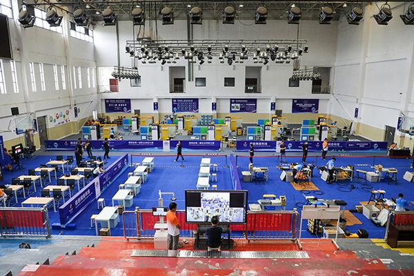在网络电缆项目比赛中,记者们看到三个比赛区分清楚,参赛者在各自的工作站前紧张有序地努力工作。 将使用24小时的视频摄像机监控比赛并记录比赛的全过程,让评委和裁判总结。