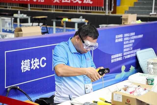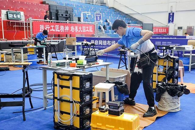 模块A是光纤电缆系统竞争,实际模拟如何通过户外纤维连接,让楼宇间联网。光纤涂层允许网络信号进行,这看起来简单,但由于光纤非常细,直径仅9微米,比头发丝的几倍薄,而且是玻璃材质,只有透过显微镜才能看见,扎到肉里都看不见,所以球员们需要非常耐心,极其心细。项目主任刘廷法官介绍了:他说:“有些球员只需要30秒就能熔接两根光纤,这个速度非常快。在比赛的三个小时内,玩家需要至少24个纤维。并对线缆进行管理,在真实场景中完成同样的工作需要一天或两天。这是艺术家的创造力和技巧的考验。