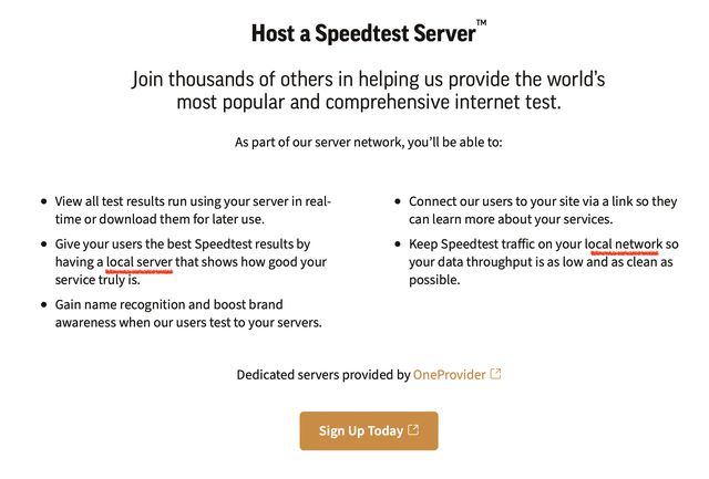 以前写的比这更清晰,现在有一些文本更改,但仍然告诉你,通过在自己的网络(本地)设置Speedtest ServerTM️服务器,你可以让你的网络用户感觉网络速度更快。