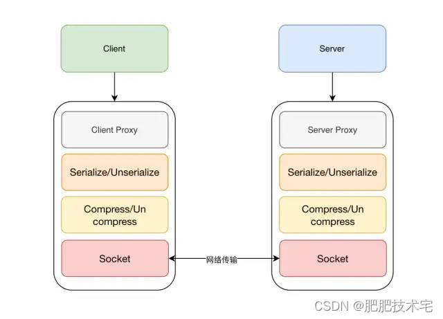 客户端通过网络传输将请求对象序列化,然后压缩代码并将其发送到服务端,然后通过压缩和逆序列重建代码到请求对象。