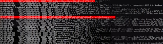 运行服务器数小时后,各种爬行动物都进来了。 它们的大多数是无害的搜索引擎,但有些是坏的访问者,例如两个请求: