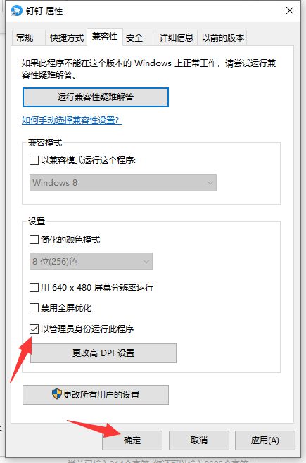 因为有些涉及系统设置的应用程序有时需要系统管理员授权运行,请单击兼容性,然后选择运行为管理员,并确认。