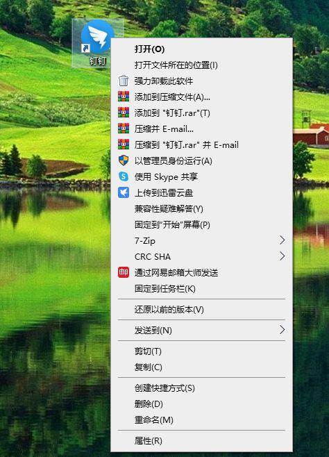 1.右击鼠标设置快捷键的应用程序,左击“属性”。