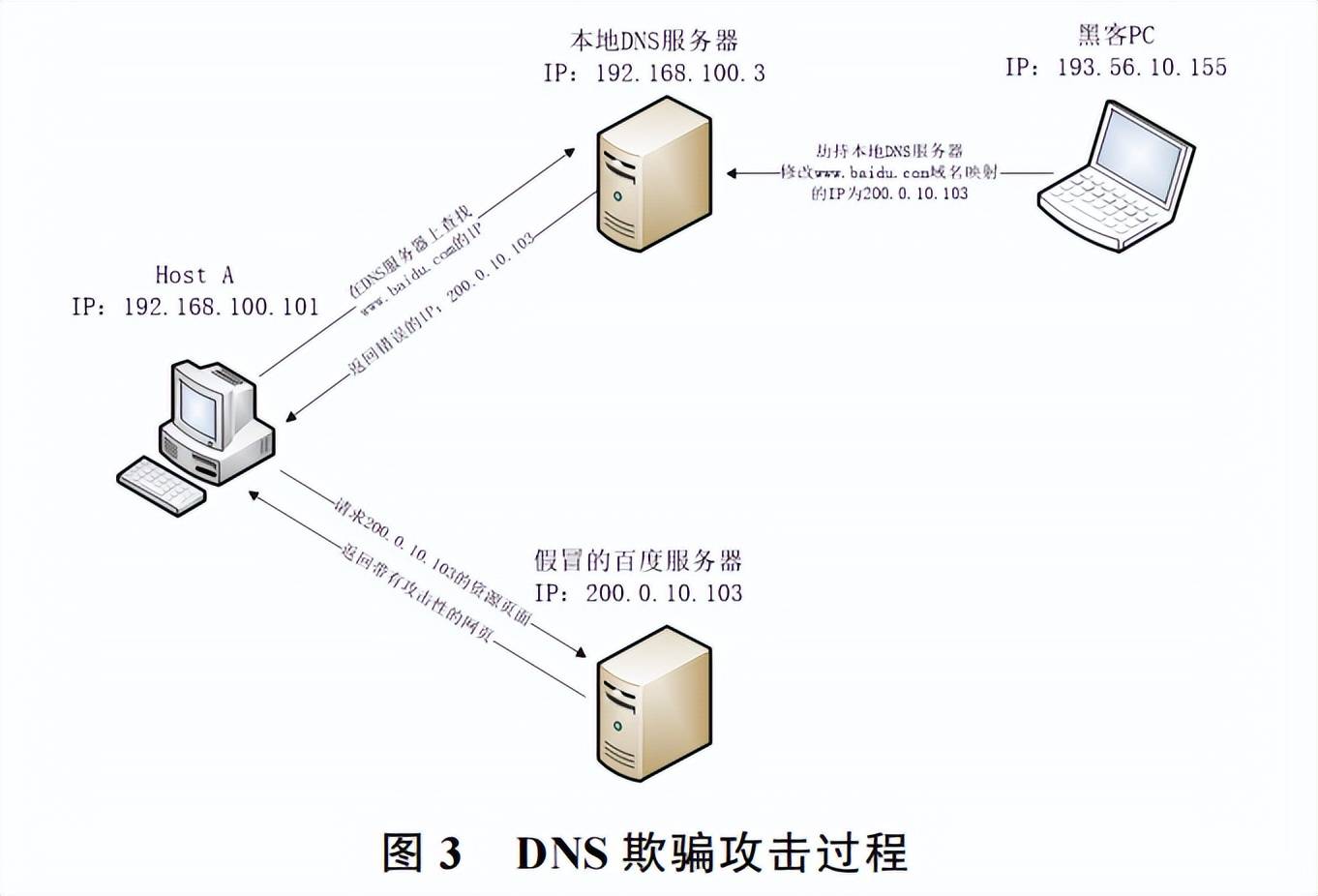 当用户访问相应的域名时,返回是错误的页面,攻击者可以将病毒插入到用户身上,也可以直接发动攻击。欺诈DNS有两种方法,一个是修改本地主机上的主机文件,主机文件实现是 DNS 服务器的功能.