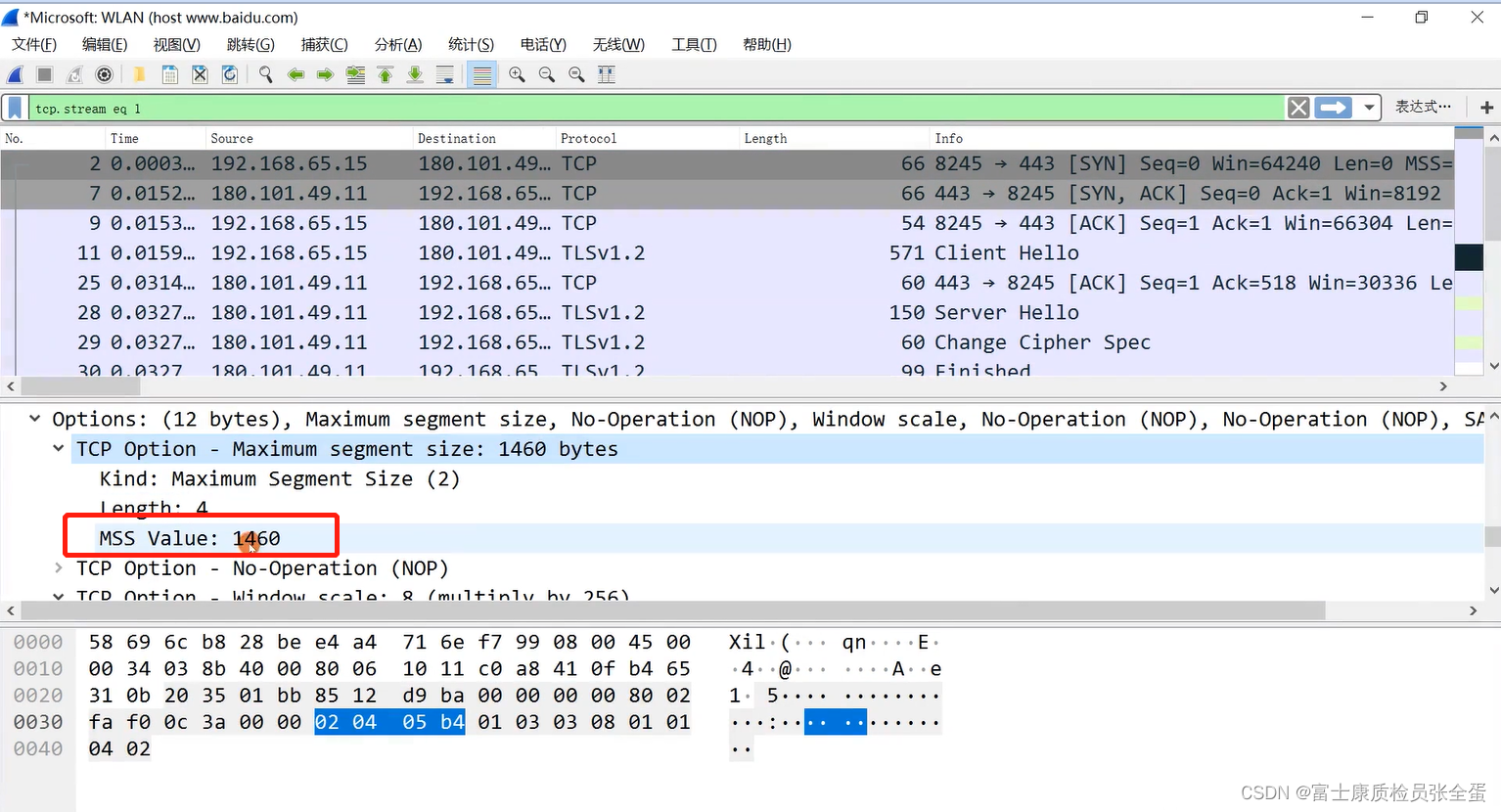 以下是如何根据 mss最大消息段大小分开TCP消息段。