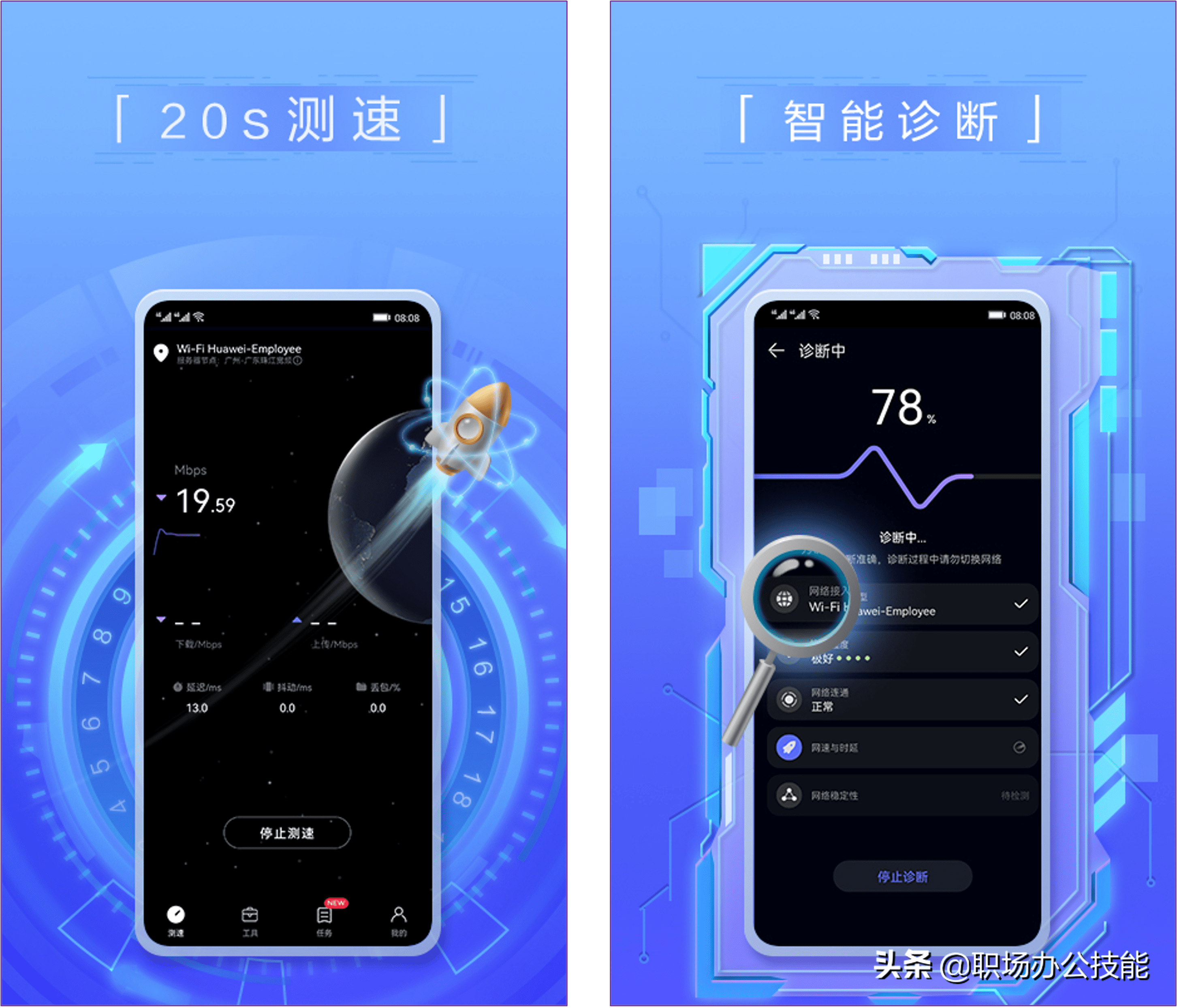 玩手机,最怕网络异常和网速波动。这是华为推出的一款非常实用的测速工具,可以快速测试移动数据、WiFi、5G网络的网速,诊断你的网络下载上传速率,帮助你解决网络堵塞等各种问题。