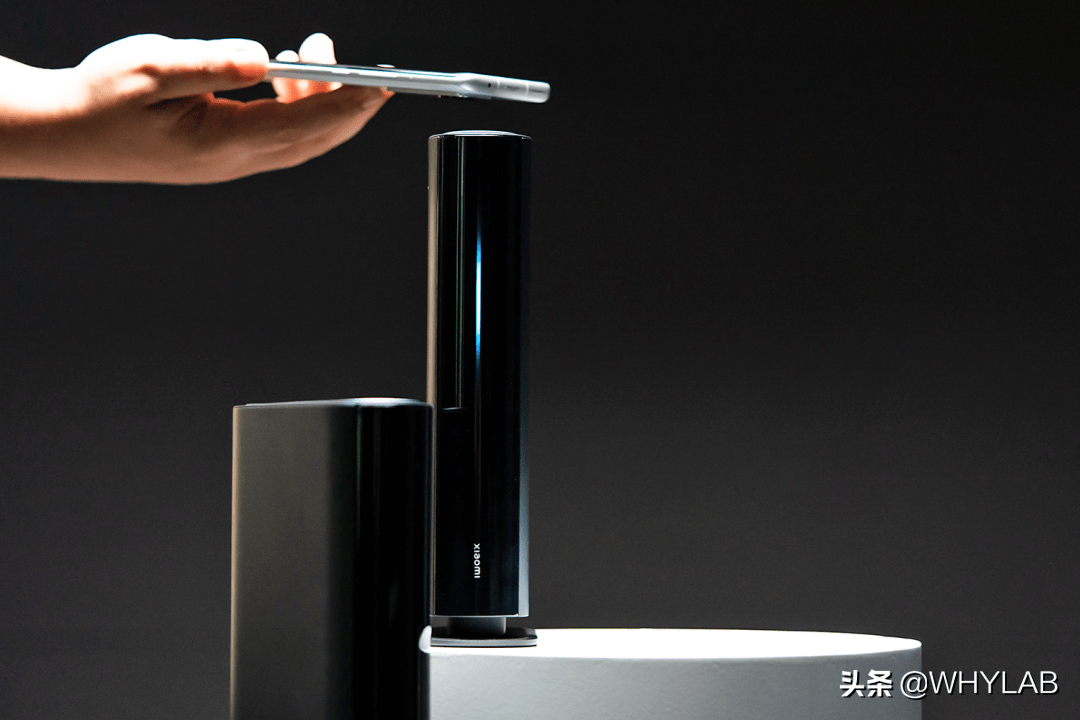 HomeWiFi真的像一个小型游戏机,身体浮动在底座上,顶部NFC面板浮动在加热板上,前面的钢琴涂装表面,底部的“牛奶”标志,以及一个隐藏的扩散器灯,它将在启动后被关掉。