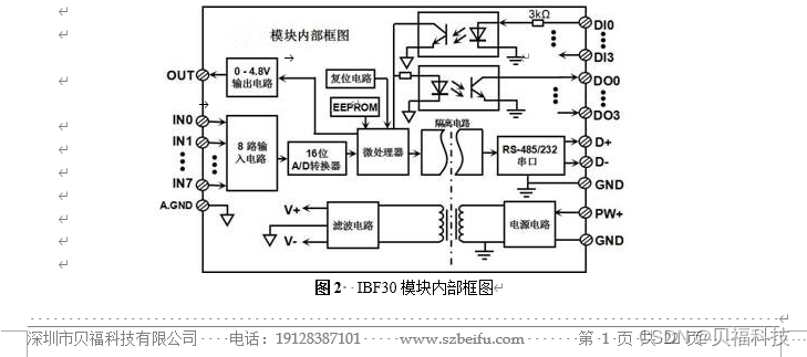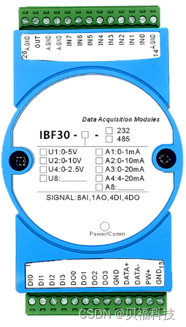 IBF30产品实现了传感器与主机之间的信号采集,用来检测模拟信号。IBF30系列产品可用于RS-232/485总线工业自动化控制系统,4-20mA/0-5V信号测量、监测和控制,和工业现场信号隔离和长距离传输等。
