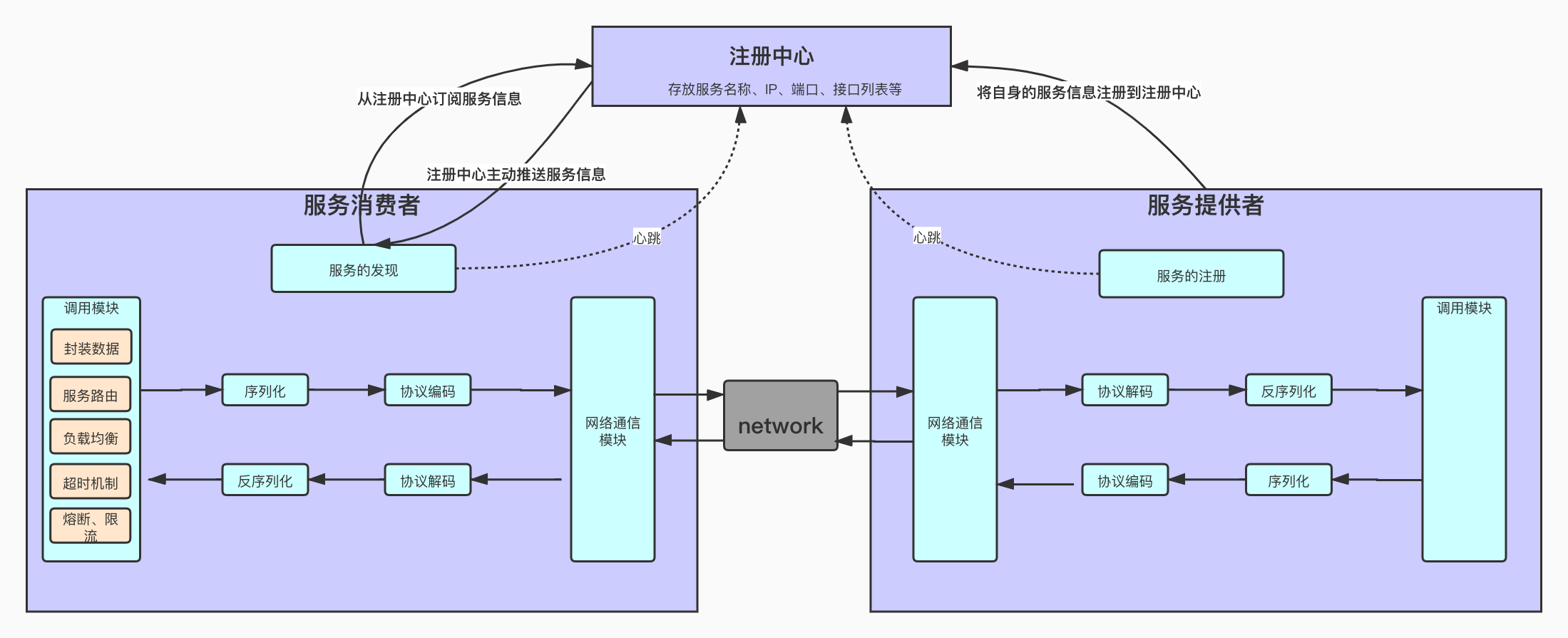 RPC的定义:远程过程调用,远程调用就像调用本地进程或函数一样.难道这并不意味着我们无法感觉到IP等地址信息的存在,请求头是否应该存在?编码不再存在。网络传输不应该让我们开发者感受到了吧…中间的所有跟调用过程相关的是不是都是RPC内部应该帮我们做的,接下来我们来看看RPC中应该有哪些模块,每个模块的意义是什么