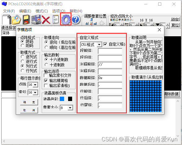 原始的图像大小必须为128X64,必须是黑白图像,最后从图像中取得的数据必须与模板中取得的数据相同。