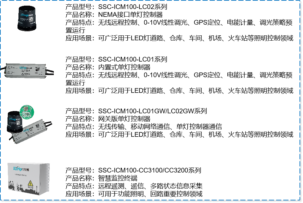 微智能照明系统硬件包括多种智能硬件产品,模块化设计,提供丰富的功能,可全面覆盖道路照明应用场景。