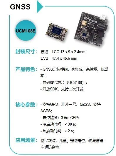 完全支持GPS、北道3定位芯片和模块化产品协议。第一款微控定位模块UCM108E,以及GPRS和定位融合模块UCM868和UCM802均面向市场。