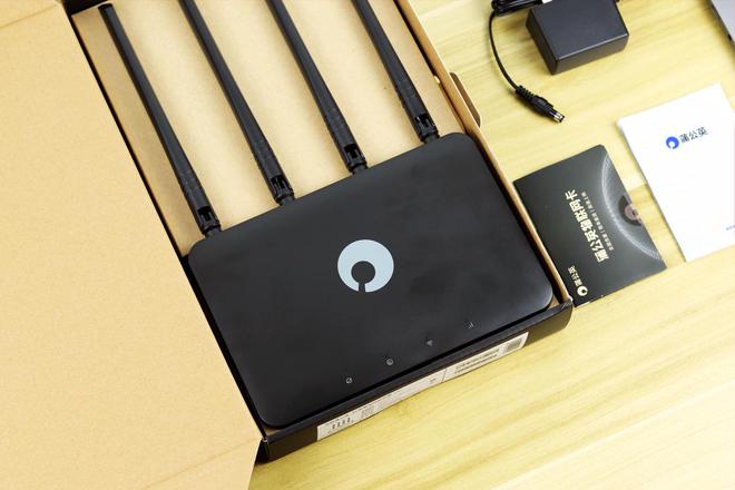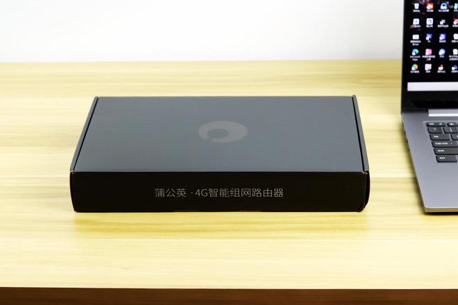 直接上产品,外盒是黑色风格,全套配件有蒲公英X4C路由器、说明书、电源,以及一张蒲公英流量卡;电源是DC圆孔电源,电源线挺长,从桌子底部拉到桌面完全无压力。