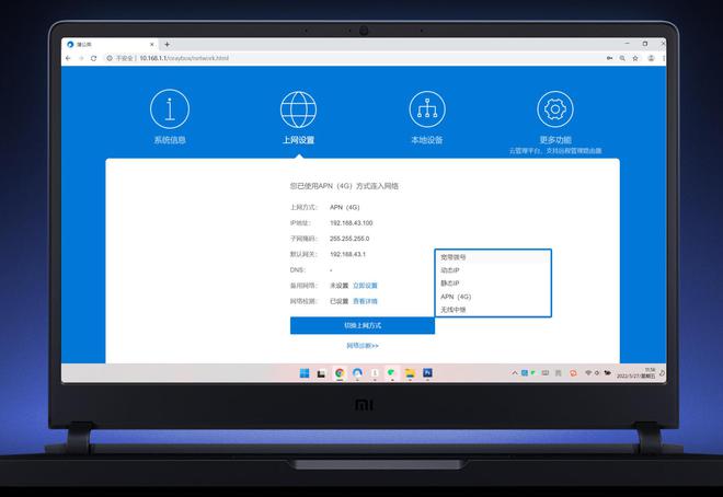 路由器开关状态插件在SIM卡中,接通电源开机,将自动设置4G网络;除4G网络模式外,它还支持宽带拨号、动态IP、静态IP和无线继电器。有五种网络访问方式。将电脑或平板电脑连接到孟买X4C网络,浏览器输入“10.168.1.1”进入本地管理界面,在互联网上设置可交换的互联网模式。因为我们临时办公区没有宽带,所以你只能选择4G互联网;如果你有宽带,可把宽带设为主网,4G设为备用网,遇到宽带断网,路由器将立即切换到4G网络,双重上网保障,再也不怕断网。