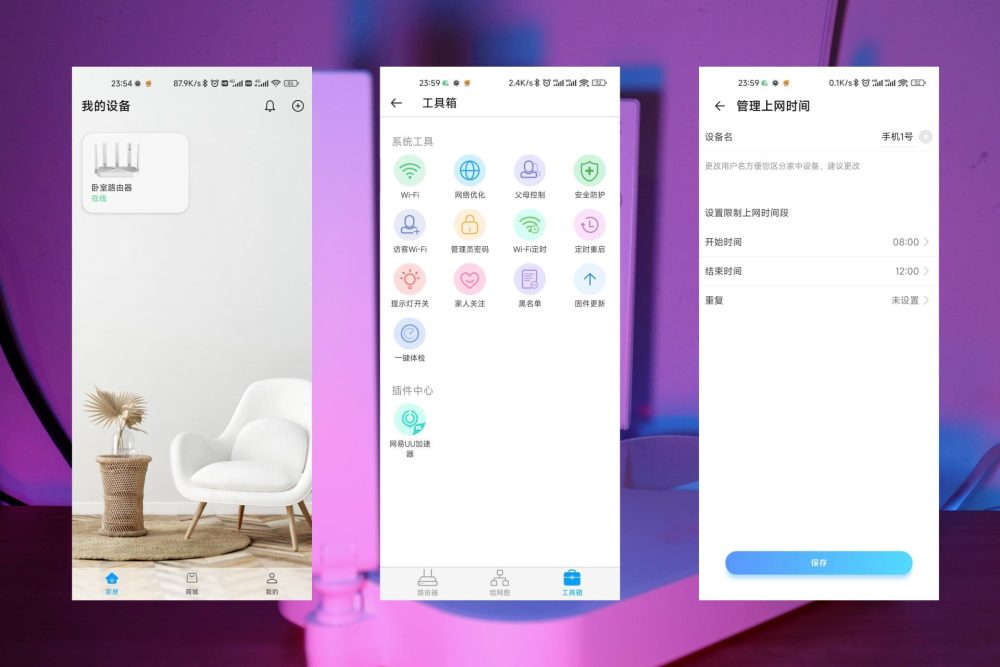 现在的路由器设置也是非常的简便,没有以往那种繁琐的教程,现在的路由器设置基本上都是通过APP来进行操作。我们可以对WiFi密码进行更改,对路由器的固件进行更新以及对路由器的提示灯进行管理等等。