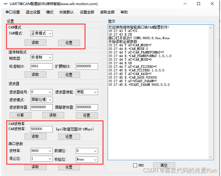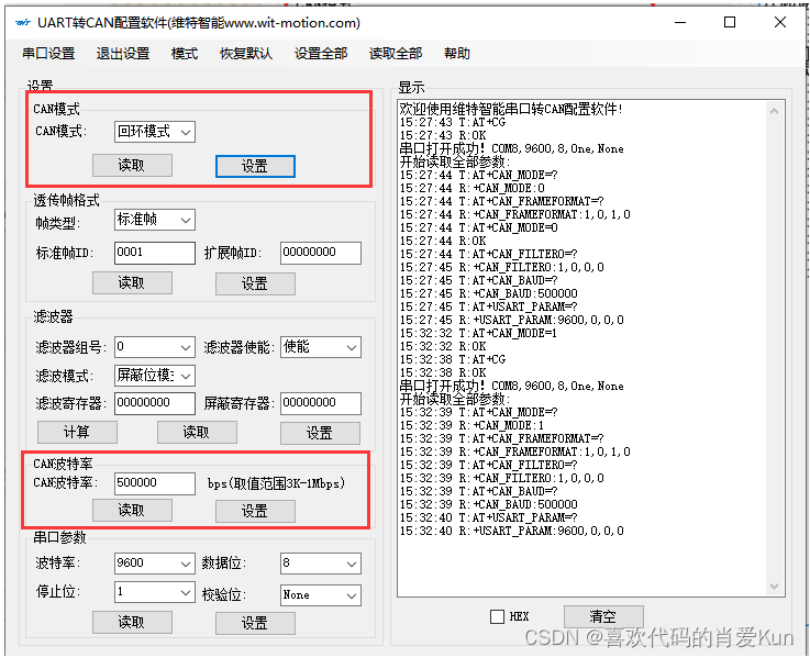 (二)将CAN模块设置为500Kbps回拨模式