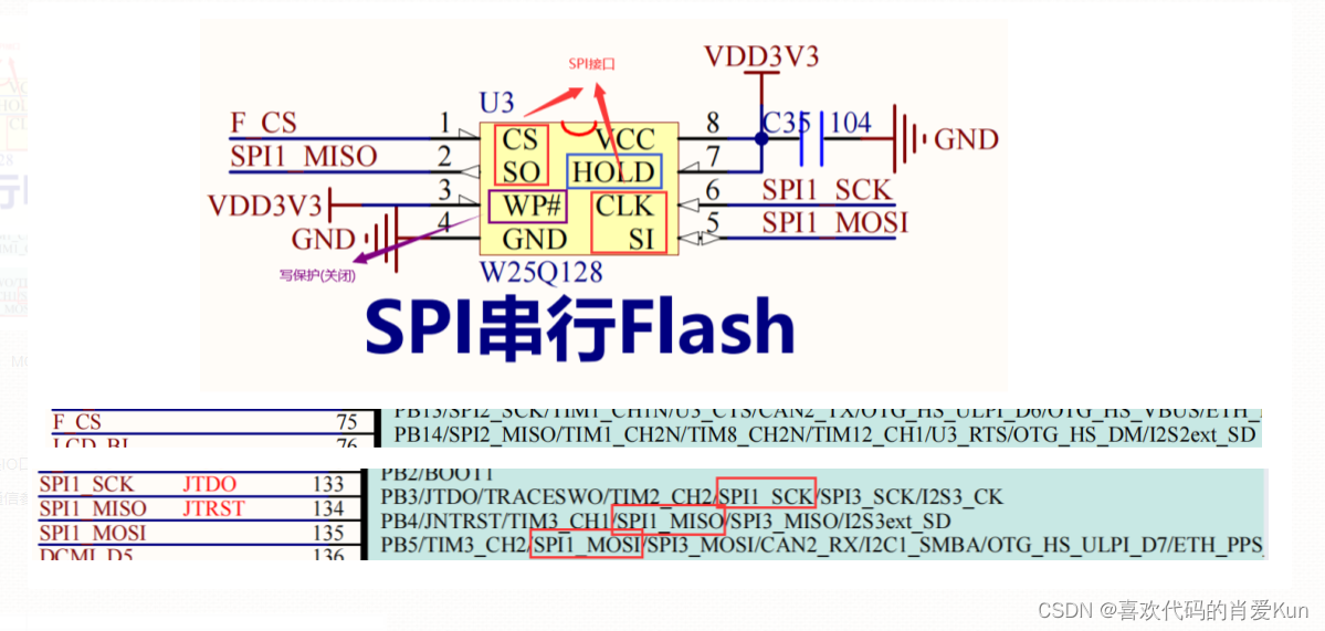 spi接口的CS连接到了PB14,SCLK,MISO,MOSI分别连接到了PB3 PB4 PB5,这三个IO口具有SPI的复用功能。