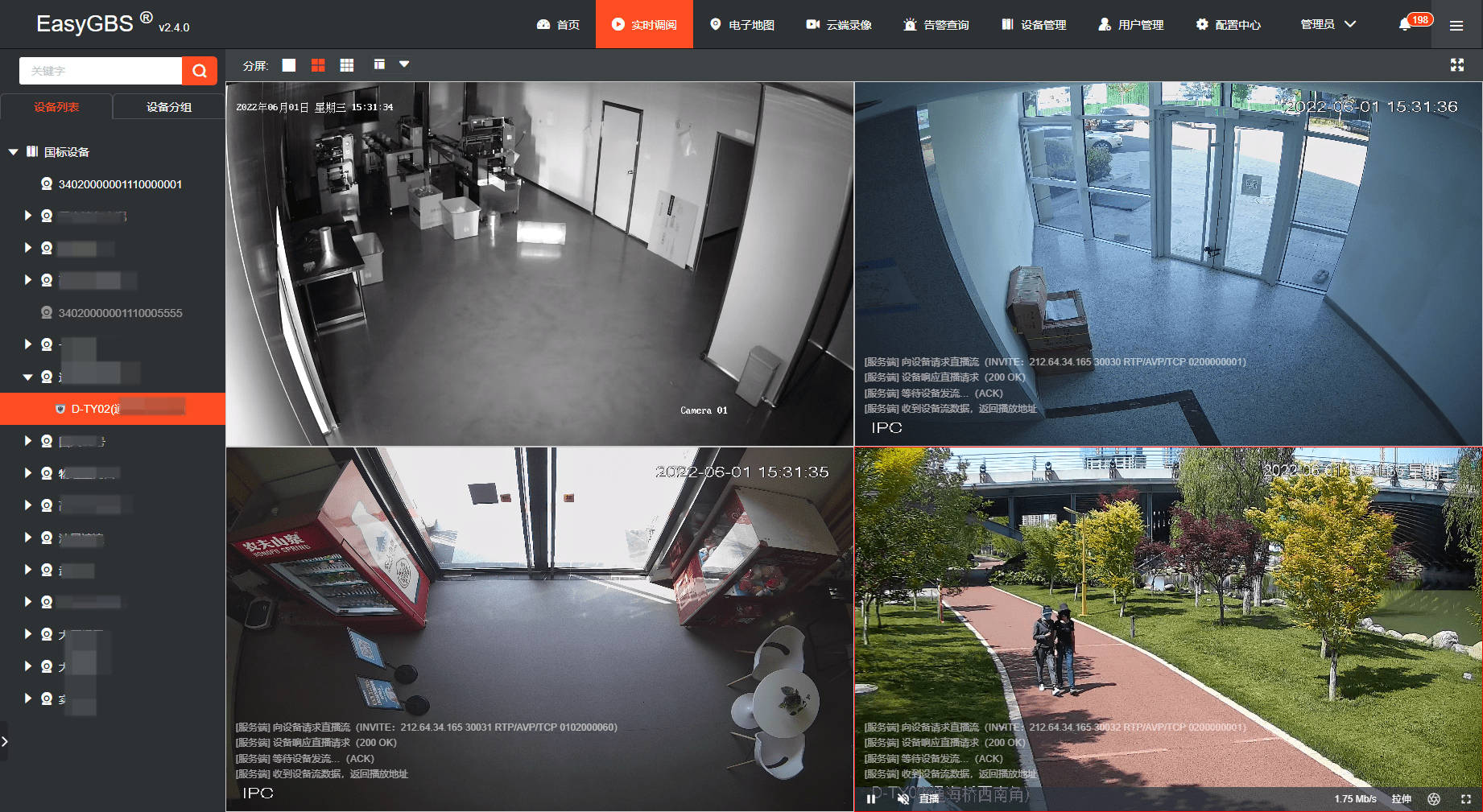 国家视频云服务 EasyGBS通过国家GB28181协议注册访问支持设备/平台,它可以实现实时视频监控、视频、检索和查看、语音对话、云存储、警报、平台级连接等。平台的部署简单,可扩展,支持在所有终端和平台中分发输入视频流,分布式视频流包括RTSP、RTMP、FLV、HLS和WebRTC格式。