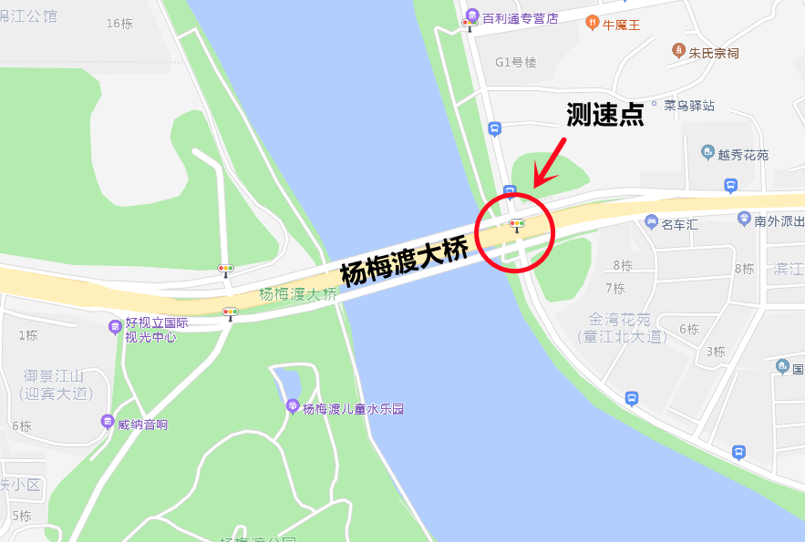 江州大桥至狮岩大道,下桥至桥点(一处)