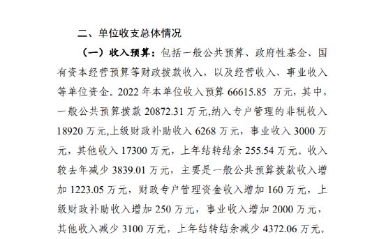 再来看邵阳学院的预算,邵阳学院是个公立学校,是拿国家补贴的——2022年,邵阳学院拿到的一般公共预算拨款是2.08亿元,上级财政补助6268万元。