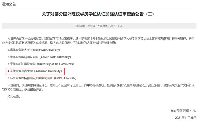 让我们看看亚当斯大学的博士学院。 2021年11月,教育部的海外学习服务中心发表了《加强某些外国教育机构的认可审查公告》(II),而菲律宾大学亚当斯顿大学也被列入名单。
