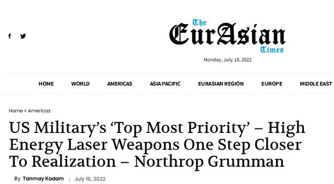 ” 《印度欧亚时报》称这是“美国军方的第一个重大成就--高能激光武器射程的实现是迈向前进的另一步”。