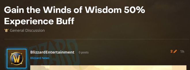 暴雪在北京时间19日23点终于发布了最新的蓝帖,而这个蓝帖真的是开放50%经验值的buff。然而开放的地方却不对劲,是在正式服开放的……