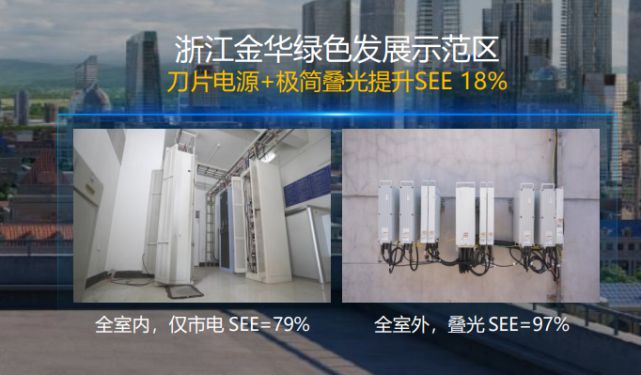 华为还推进室外机柜到刀片电源上杆演进,借助自然散热,使站点能效从90%提升至97%。此外,华为刀片电源可支持2/3/4/5G共站,是目前业界最高效的刀片电源。