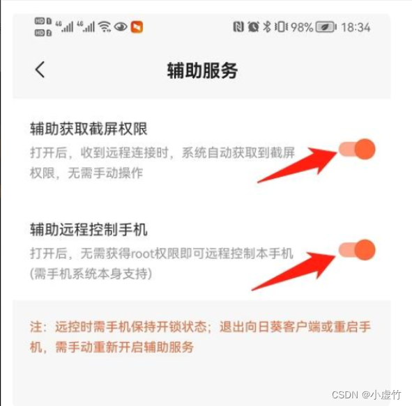2,向日花客户开放辅助服务,获取屏幕切换和控制手机权限;